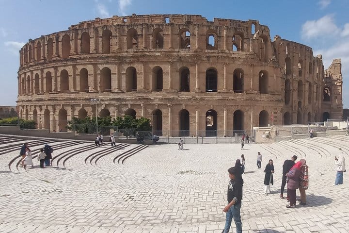 Explore South Tunisia on a private 2-day tour. Visit the El Jem colosseum, holy Kairouan, and Chott el Jerid salt lake. Experience a sunset over the Sahara dunes, stay overnight in a luxury desert camp in Douz, and discover Matmata’s troglodyte homes. Ful
